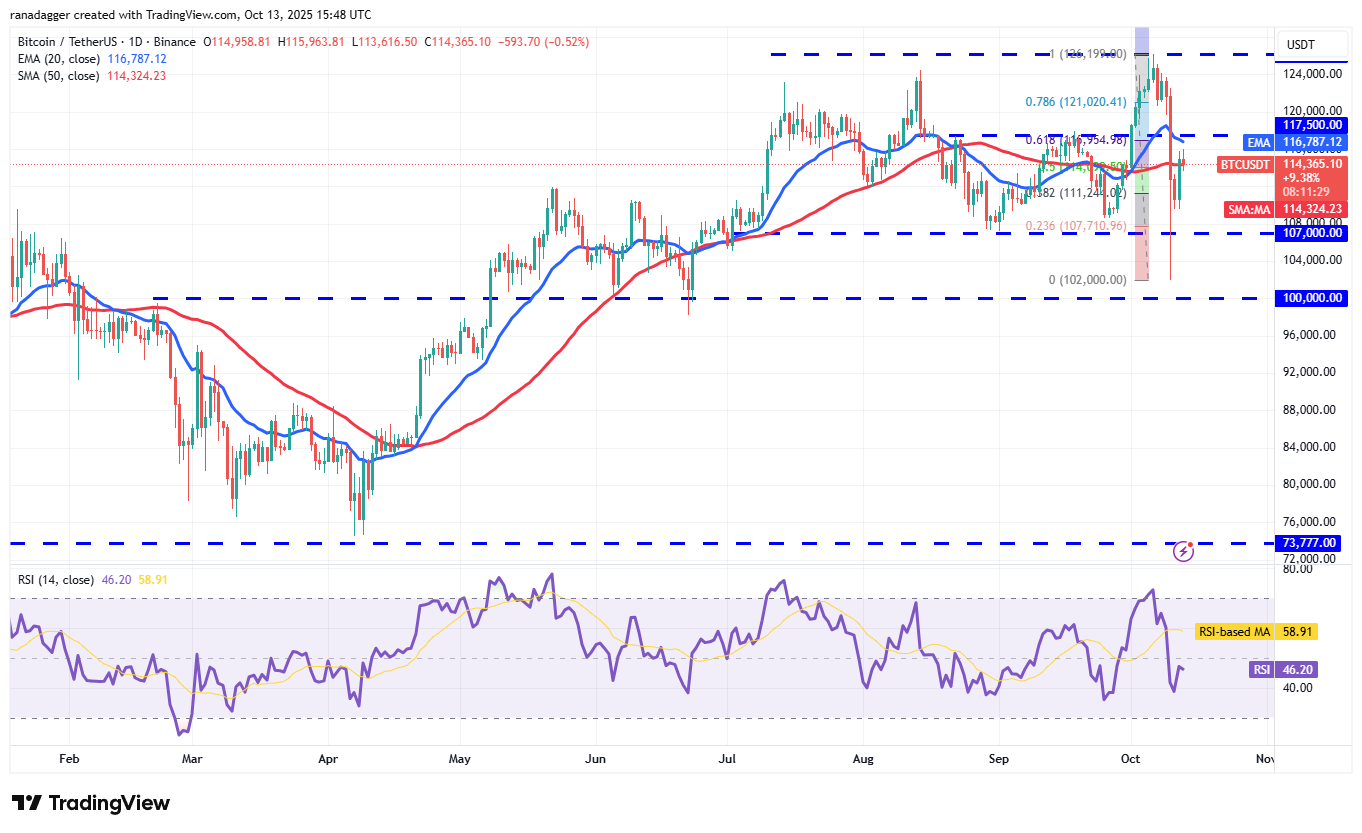 The Bitcoin price dipped to $102,000 on Friday, but quickly made a sharp recovery, indicating buying at lower levels. The BTC/USDT pair is expected to face selling at the 61.8% Fibonacci retracement level of $116,955.