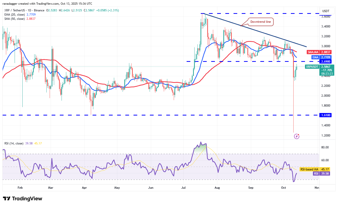 A minor positive is that the XRP price made a solid recovery from the $1.25 low, signaling aggressive buying at lower levels. The relief rally is expected to reach the 20-day EMA ($2.77), where the bears are expected to step in. If the price turns down from the 20-day EMA, the XRP/USDT pair could slump to $2.20 and subsequently to $2.