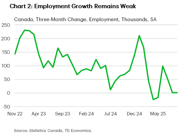 However, this brings us to the upside to the outlook. The hope is the new government’s first budget next week will confront the challenges the economy is facing. Among the objectives is diversifying Canada’s trade relationships to double non-U.S. exports in the next decade. To accomplish this, large, near-term investments in trade-facilitating infrastructure are expected, on top of a substantial commitment to lift defense spending to 5% of GDP by 2035. The timing and scale of the outlays could provide a lift to growth in the medium-term as funds start to flow.