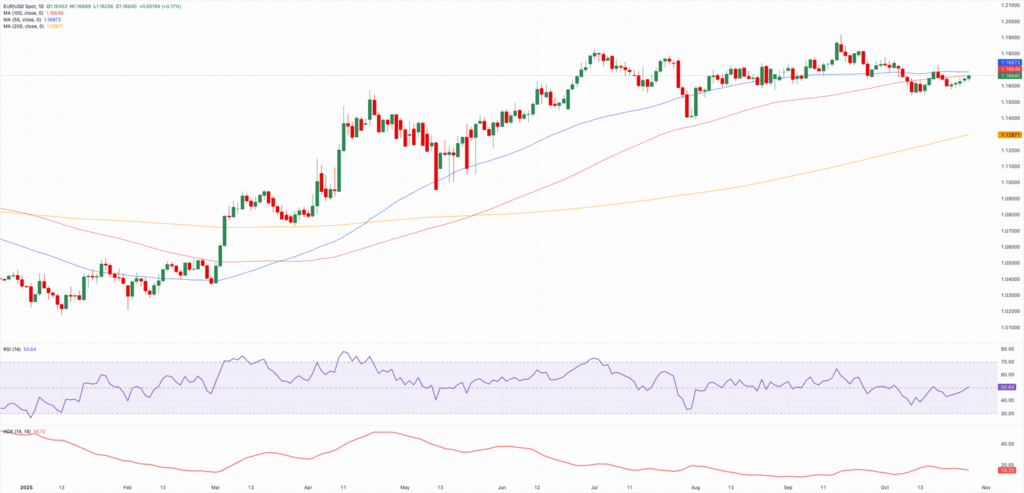 The move keeps the pair’s recovery on track, helped by renewed weakness in the US Dollar (USD) as Treasury yields retreat and traders turn cautious ahead of Wednesday’s Federal Reserve (Fed) meeting. On the latter, the Fed is widely expected to trim the Fed Funds Target Range (FFTR) by 25 basis points to 3.75%–4.00%.