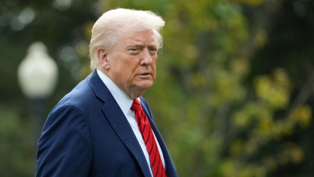 U.S. President Donald Trump arrives at the White House, following his annual physical exam at Walter Reed National Military Medical Center, in Washington, D.C., U.S., October 10, 2025.