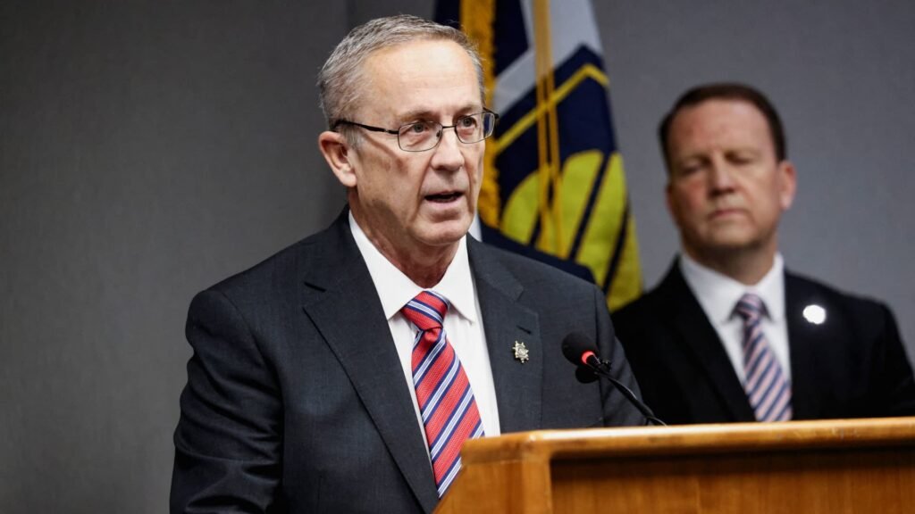 Utah County Attorney Jeffrey S. Gray speaks during a press conference about the charges and next steps in the case of Tyler Robinson, who is suspected of fatally shooting U.S. right-wing activist and commentator Charlie Kirk, an ally of U.S. President Donald Trump, in Provo, Utah, U.S., Sept. 16, 2025.