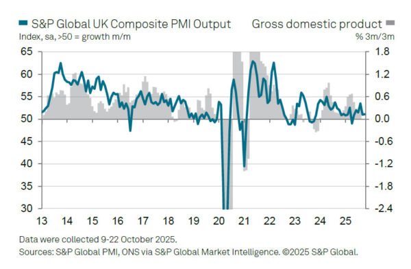 Chris Williamson, Chief Business Economist at S&P Global Market Intelligence, said the data “brings hope that September was a low point,” noting the first manufacturing growth in over a year and stronger consumer demand for services. He added that inflationary pressures are easing back toward levels “consistent with the Bank of England’s 2% target,” while job losses are moderating and business confidence is ticking up slightly.