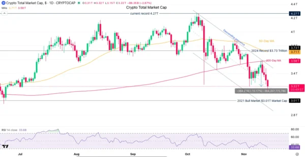 Crypto Total Market Cap down another 10% this week – Source: TradingView