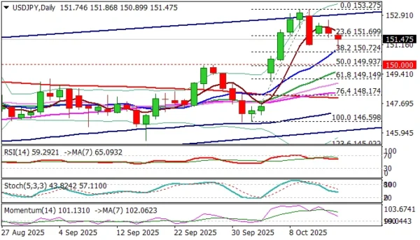 Conversely, sustained break of 150.72 to generate bearish signal, with extension below 150 pivot to open way for deeper correction.