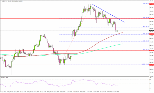 - A key bearish trend line is formed with resistance at 151.70 on the 4-hour chart.