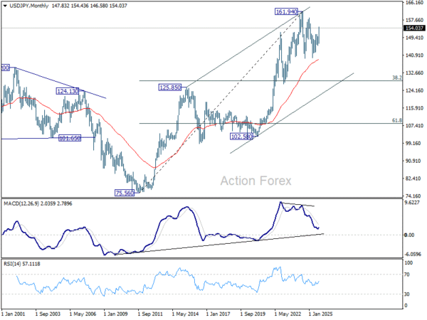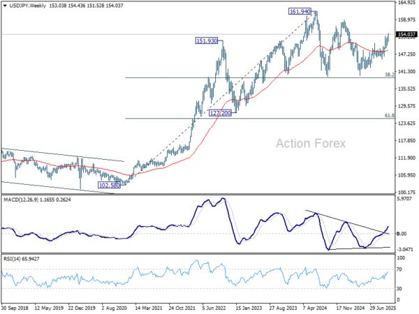 In the bigger picture, current development suggests that corrective pattern from 161.94 (2024 high) has completed with three waves at 139.87. Larger up trend from 102.58 (2021 low) could be ready to resume through 161.94 high. On the downside, break of 145.47 support will dampen this bullish view and extend the corrective pattern with another falling leg.