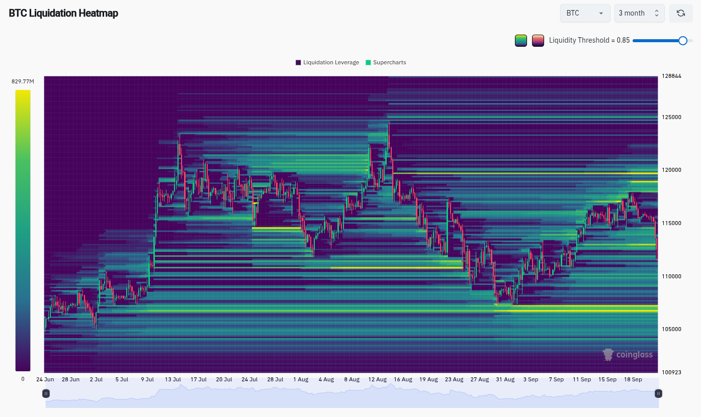 Heatmap data highlights concentrations around $113k–$114k, showing where leverage was most vulnerable.🔗https://t.co/kizdWyZQ6n pic.twitter.com/fCwAHB1nRg