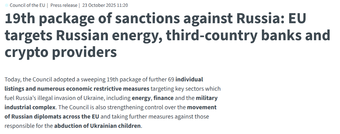 Russia has employed a number of methods to avoid wartime sanctions, including crypto. Just two days after the strategic session, the EU passed its 19th package of sanctions on Russia. It included significant sanctions on the Russian state-backed stablecoin A7A5.