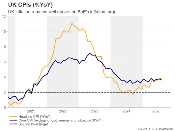 Tighter fiscal policy creates room for a more accommodative stance, yet the BoE’s next steps will hinge largely on next week’s inflation data. The Bank itself projected that inflation is expected to increase slightly in September from 3.8% y/y in August. Should Wednesday’s CPI report confirm this, investors may scale back their rate cut bets, thereby injecting fuel into the pound’s engines. A set of encouraging retail sales and PMIs may add extra credence to the idea that policymakers should not rush into lowering borrowing costs.