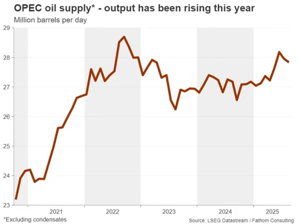 According to Reuters, the range being discussed is between 274,000 bpd and 411,000 bpd. An announcement on Sunday of a figure at the higher end of that range is likely to weigh on oil prices at the start of trading on Monday. However, a number closer to 200,000 bpd would spark a small relief rally.