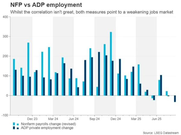 However, rate cut bets will probably get boosted even in the absence of the jobs data, just by the government shutdown dragging on further, as the Fed will be more likely to lower borrowing costs if there’s a big jump in the temporary layoff of federal employees and the loss of economic output from government departments being shut.