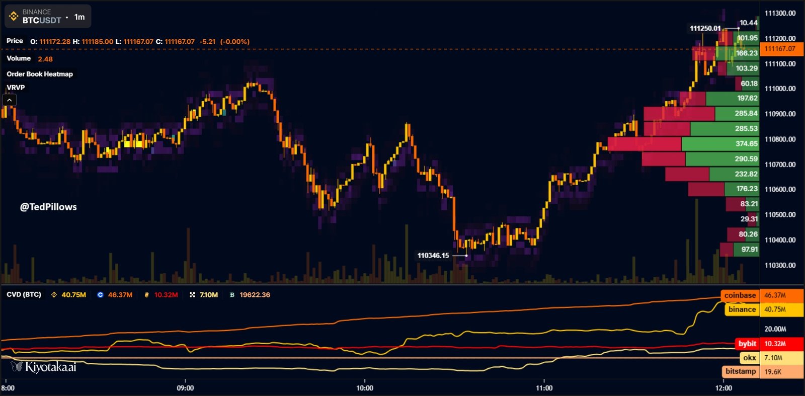 “Binance and Coinbase are bidding on $BTC now,” crypto investor and entrepreneur Ted Pillows confirmed on X.