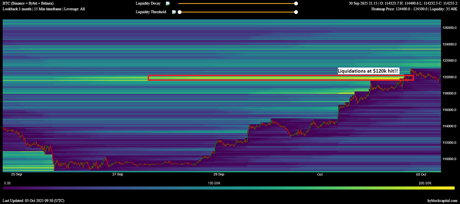 “Liquidations at $120k have been hit,” he summarized in part of his latest analysis on X.