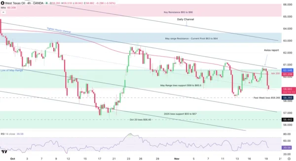 US Oil (WTI) 4H Chart. November 19, 2025 – Source: TradingView